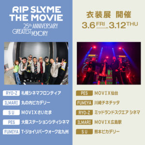 3月6日(金)より2週間限定で上映する『RIP SLYME THE MOVIE -25th ANNIVERSARY GREATEST MEMORY-』の公開を記念して、RIP SLYMEメンバーが登壇する「公開記念舞台挨拶」の開催が決定いたしました!皆様のご来場をお待ちしております。
